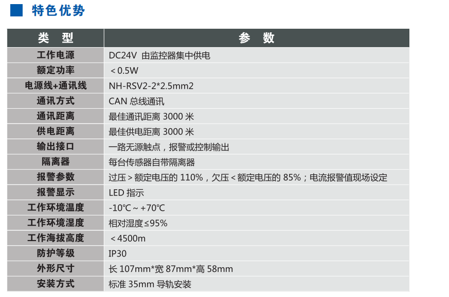 传感器技术参数